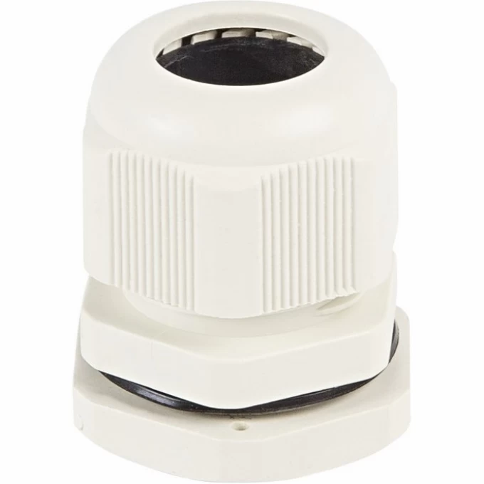 Кабельный ввод предназначен для фиксации кабеля при вводе его в электротехническое оборудование, например: коммутационные шкафы, короба, пульты управления, предназначенные для эксплуатации на улице, в подвалах, в условиях морского тумана, повышенного загрязнения и т. п. Защищает кабель от перетирания об острые края оборудования в процессе эксплуатации. Конструкция гайки предотвращает раскручивание.