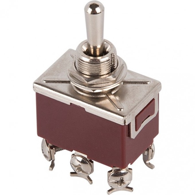 Тумблер 250V 15А (6c) (ON)-OFF-(ON) двухполюсный предназначен для коммутации электрических цепей переменного тока напряжением до 250В. Такая разновидность переключателей применяется на лицевых панелях в качестве комплектующих изделий различного электрооборудования (в измерительных приборах, блоках питания, электроустановках на различных производствах, легковых и грузовых автомобилях, поездах и многих других местах). Отличительной особенностью тумблера является перекидной переключатель, принцип действия которого основан на его перемещении в одну из позиций. Для переключения в нужное положение требуется приложить некоторые усилия. Монтаж осуществляется без применения винтов на плоских панелях толщиной от 0.8 мм до 4 мм. Подключение контактов осуществляется с помощью винтов.