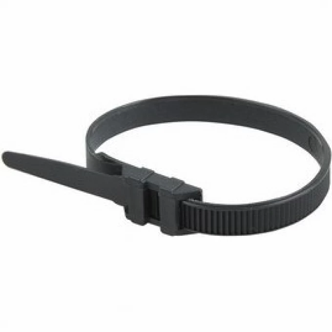 Хомут усиленный с двойным замком nylon 260х9 мм 100 шт., чёрный REXANT. Предназначен в первую очередь для крепежа и бандажирования кабелей и СИП. Отличается от стандартных стяжек материалом — изготавливается из нейлона-12, за счет чего имеет МОРОЗОСТОЙКОСТЬ, большую прочность, стойкость к воздействию агрессивных сред и негативных погодных условий. Также имеет двойной плоский замок, который более компактен в смонтированном виде, по сравнению со стандартными стяжками. Такая особенность позволяет экономить пространство при жгутировании и прокладке нескольких пучков кабеля рядом или в одной трассе, например, в авиационной промышленности. Полиамид-12 обладает высокой ударопрочностью, в том числе при низких температурах (выше, чем у полиамида-6, -66, -6.10). Имеет низкое влагопоглощение, высокую стабильность размеров и лучшие диэлектрические свойства, что позволяет применять его в северных широтах.